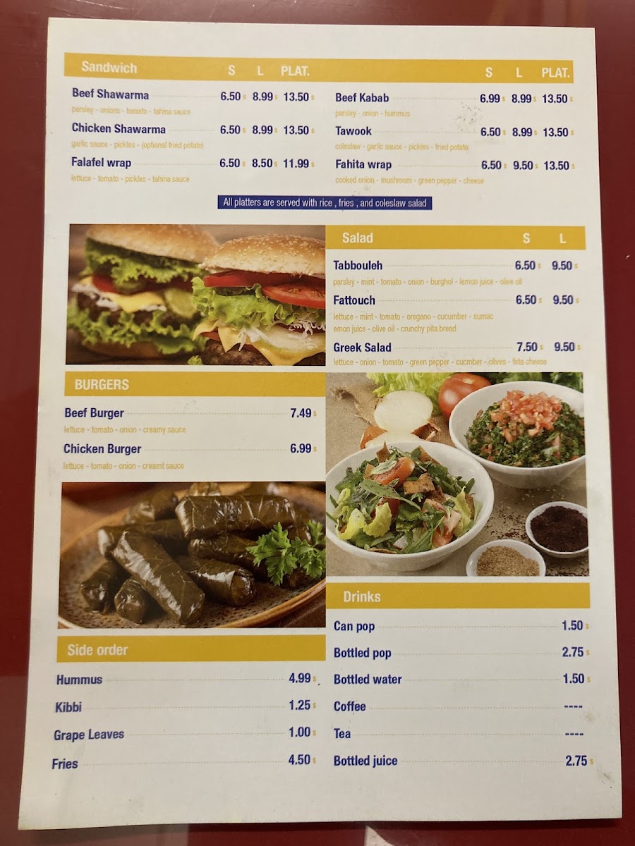 Beirut Shawarma and kabab (HALAL FOOD) Menu